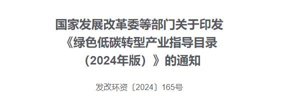 10部门联合印发2024年版《绿色低碳转型产业指导目录》
